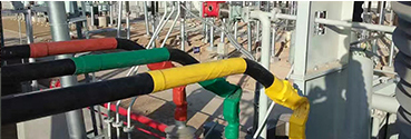 本公司采用復(fù)合屏蔽絕緣的方法來(lái)改善母線(xiàn)材料的有效利用率,提高了母線(xiàn)機(jī)械強(qiáng)度,從而增加了母線(xiàn)的跨度距離,使占地用量減小等實(shí)際優(yōu)點(diǎn)。利用半絕緣、全絕緣的新工藝達(dá)到防止人身觸及帶電母線(xiàn)及金屬物落到母線(xiàn)上產(chǎn)生相間短路等